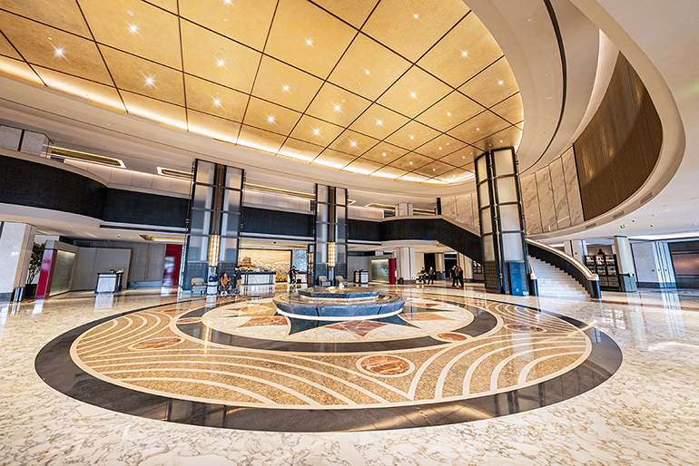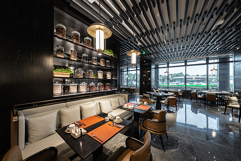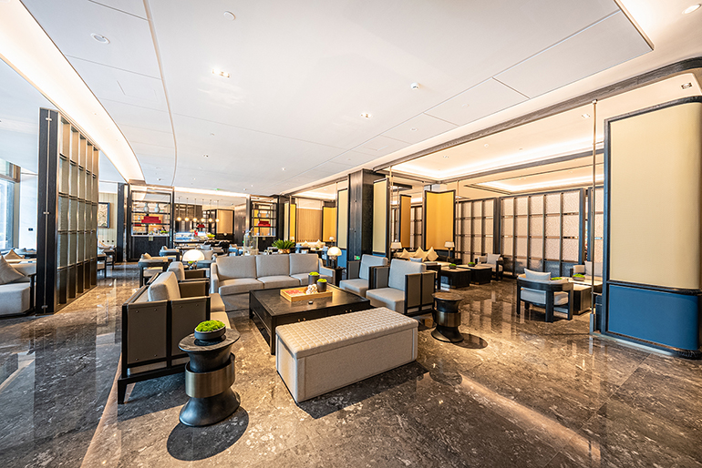 这是一座无法批量施工的项目:气势恢宏的无柱宴会厅、素洁静雅的辰山中餐厅、中西合璧的新福席特色餐厅……每个空间都有其独特的美学蕴含,仅在港源施工范围内的空间就涉及