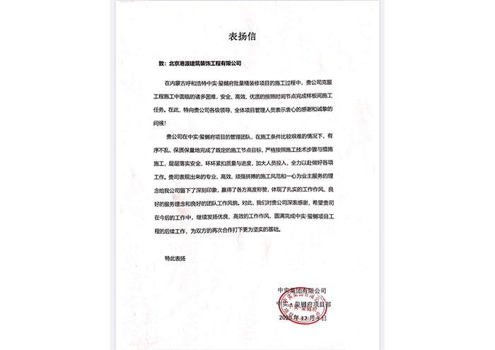 首寰表扬信