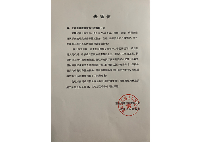 双铁城项目-表扬信