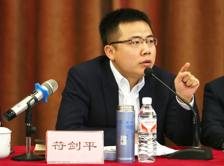 ▲ 港源装饰董事长兼总裁符剑平主持会议