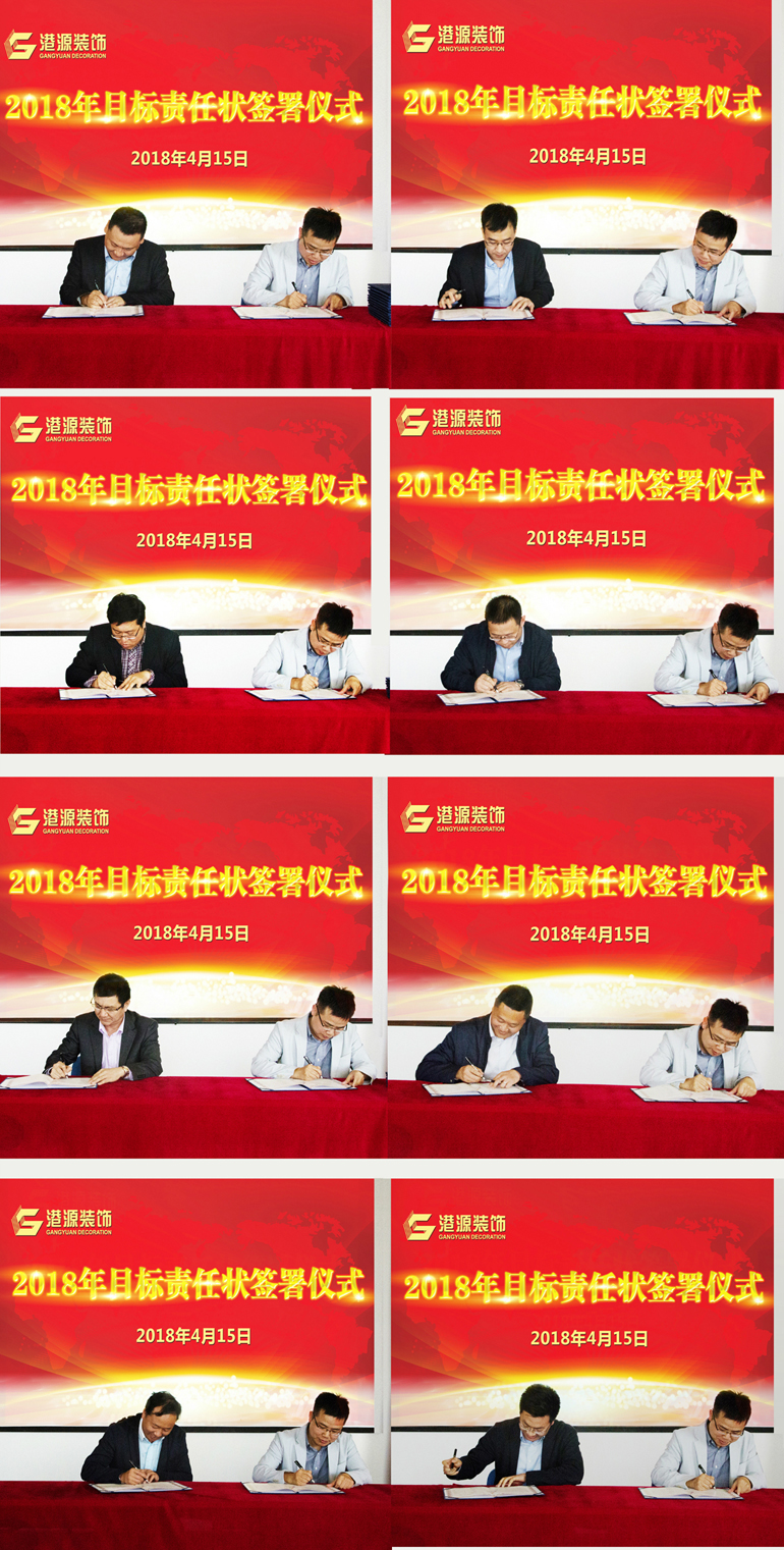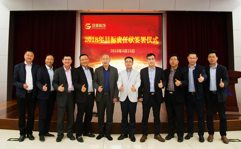 为全面落实公司年度战略目标,强化绩效和激励机制,4月15日,港源装饰各运营分公司在会议上签署了2018年度目标责任状,并明确地将年度目标层层下达,使“年初有计划、年底有考核”的闭环管理模式真正实现落地!
