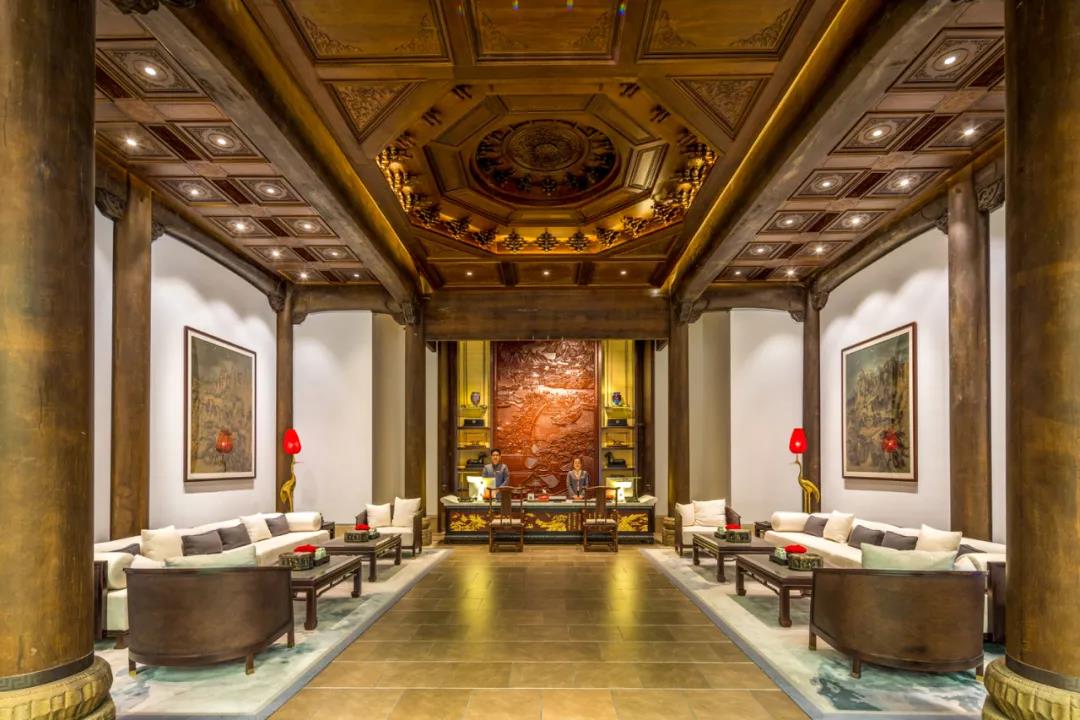 悦麓·开元观堂酒店依山而建,临水而居,总建筑面积两万余平方米。港源装饰负责该酒店全部施工区域的精装修工程,包含客房、总统套房、古宅式套房共100余户。仿古建筑承载了我国深厚的历史文化底蕴,但也存在与现代旅居习惯不符以及建筑安全隐患等弊端。为此,港源装饰项目团队在施工材料和施工工艺等方面不断深入研究,使用非传统工艺寻求突破,以此达到高度还原徽州古建风貌且兼顾隔音效果、安全质量、防火防水防腐蚀等质量要求的施工成果。