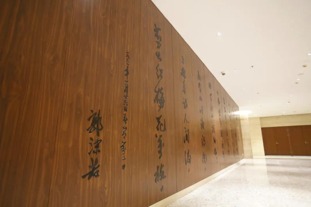 其中,馆内局部空间天花饰面的GRG纹样、郭沫若题词饰面的凸蒙砂蚀刻,都展现了港源装饰精装团队对施工工艺的细致严苛、精益求精。