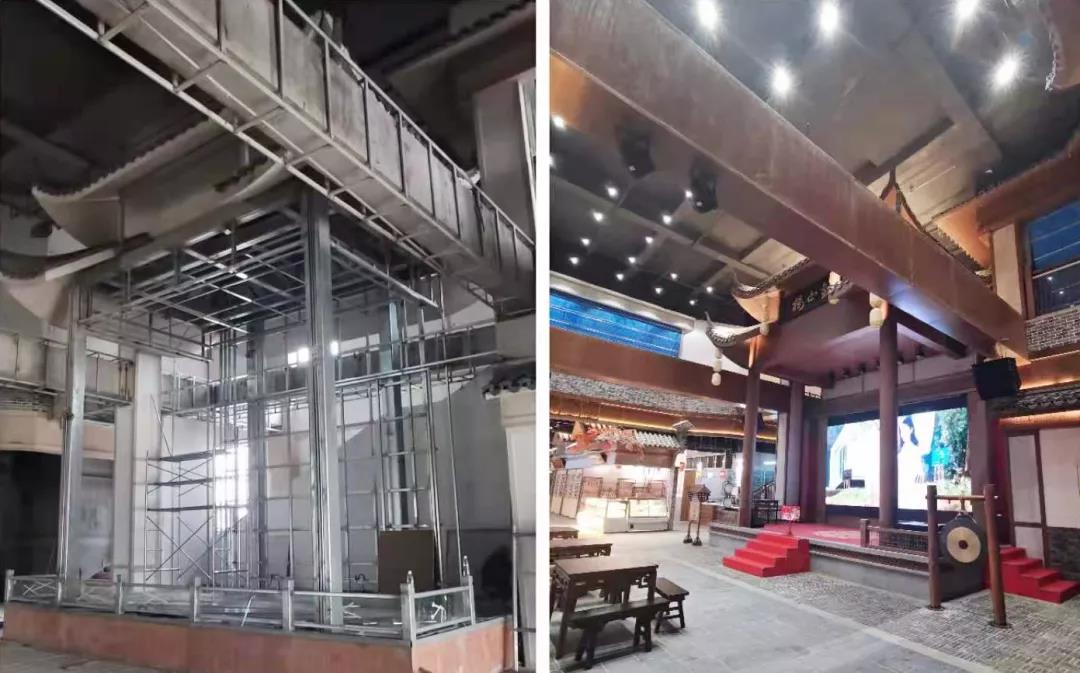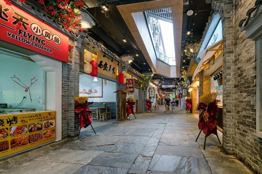 在『铜鞮巷』美食街施工过程中,港源团队为了重现千年前的人文环境,制作仿古部件及石材时毅然决定寻找老工匠手工订制雕刻,为42座铺面分别呈现不同的主题风格,以此展现出“一店一品一特色”的街区风貌。